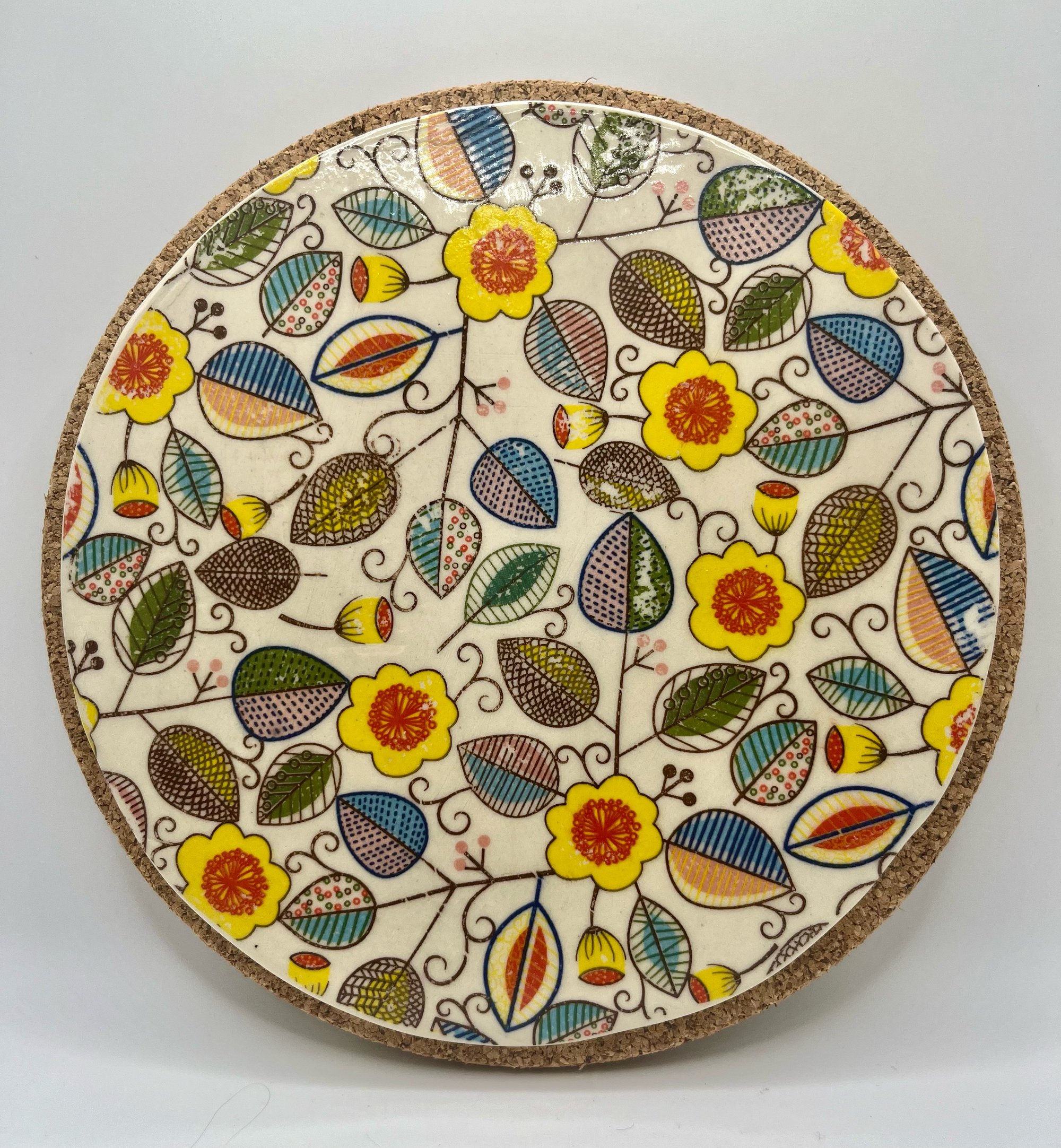 Handmade ceramic trivet with cork backing. A beautiful and functional piece of art.